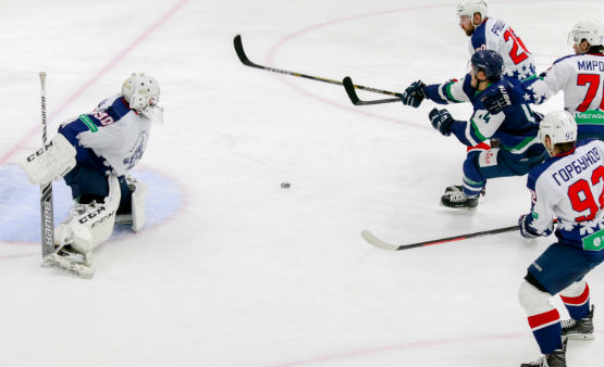 С самого начала ледового поединка саровчане уверенно действовали в нападении и обрушились на ворота соперника градом бросков.